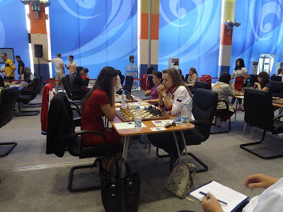Anastasia Bodnaruk is leading the tournament after 6 rounds, with 5,5p, being followed by 3 players with 5p- Ju Wenjun, Zhao Xue and Rogule Laura. I've got 4,5p, as well as Sopiko Guramishvili, Anastasia Savina and Alina Kashlinskaya.